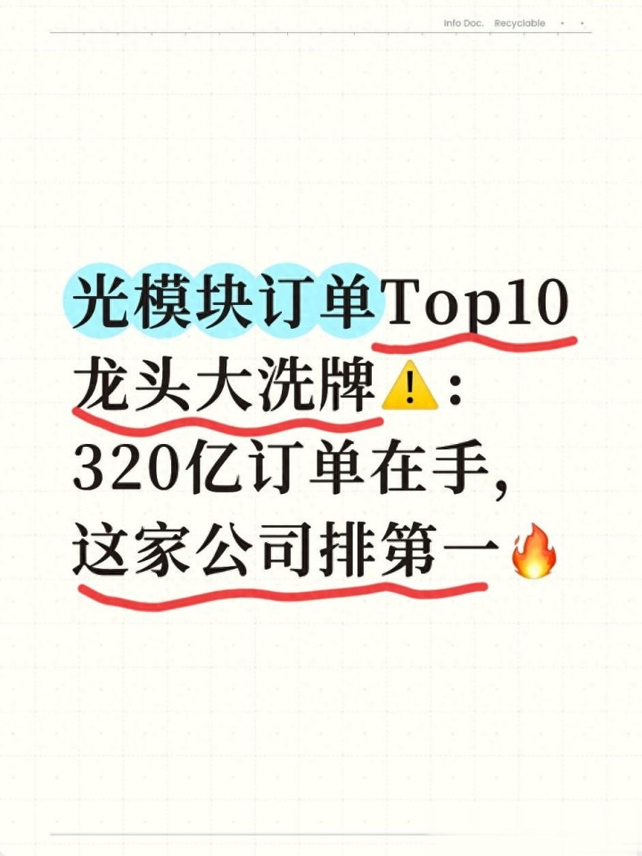 最近AI算力板块持续火爆,光模块作为算力网络的"高速公路",更是成为资金扎堆的核心方向。但很多朋友炒光模块,只知道追概念、看股价,却忽略了最硬核、最真实的指标——在手订单。